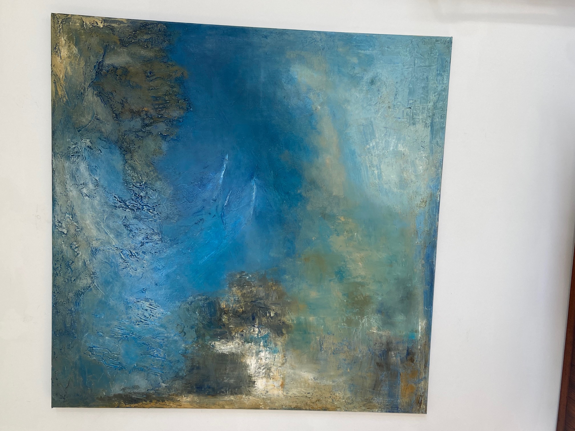 Twee blikken, één landschap. In de schilderijen van Ger en Thei Timmermans vloeien lagen pigment en materie samen tot een stil ritme van kleur en textuur. Wat lijkt op land, lucht of water, wordt een innerlijk landschap – een plaats van rust, beweging en herinnering. In het Boshotel in Vlodrop nodigen zij je uit om te vertragen, te kijken en opnieuw te zien.